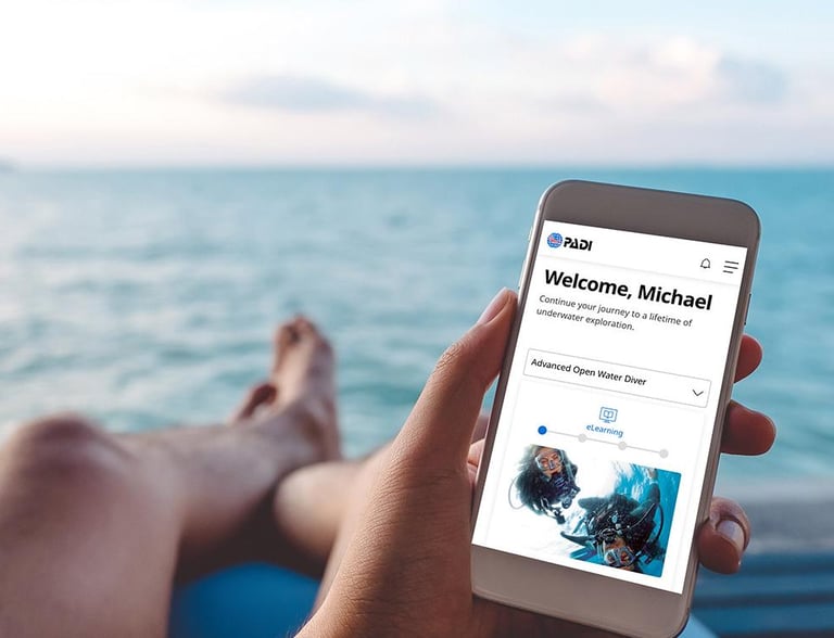 Esta fase se realiza mediante estudio independiente con el material digital oficial de PADI (eLearning).